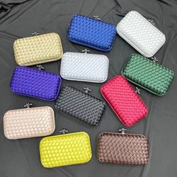 最新のファッションレディース手作り織りボックスバッグ女性用小さなクロスボディハンドクラッチバッグ、ダブルジッパー化粧品バッグ財布付き